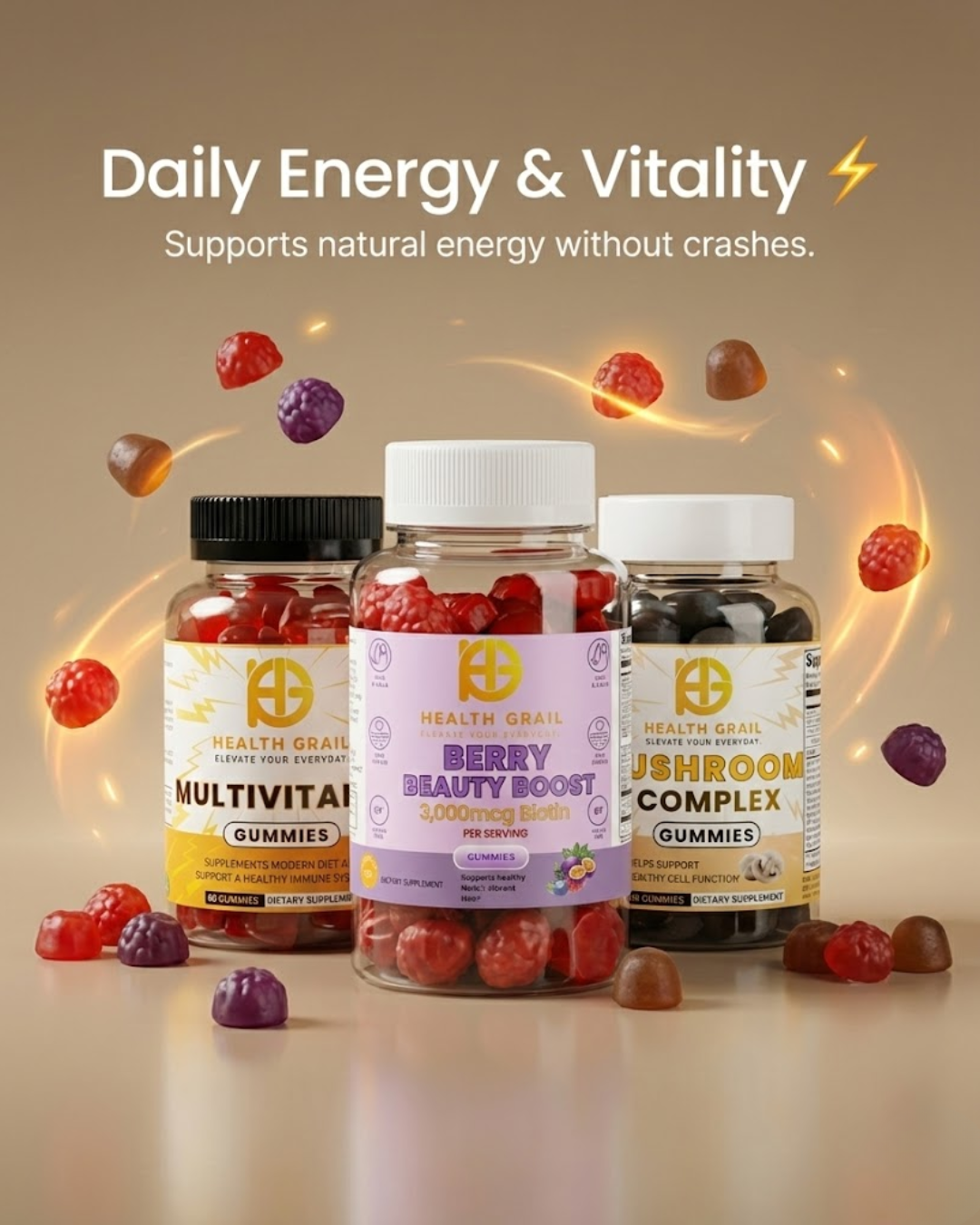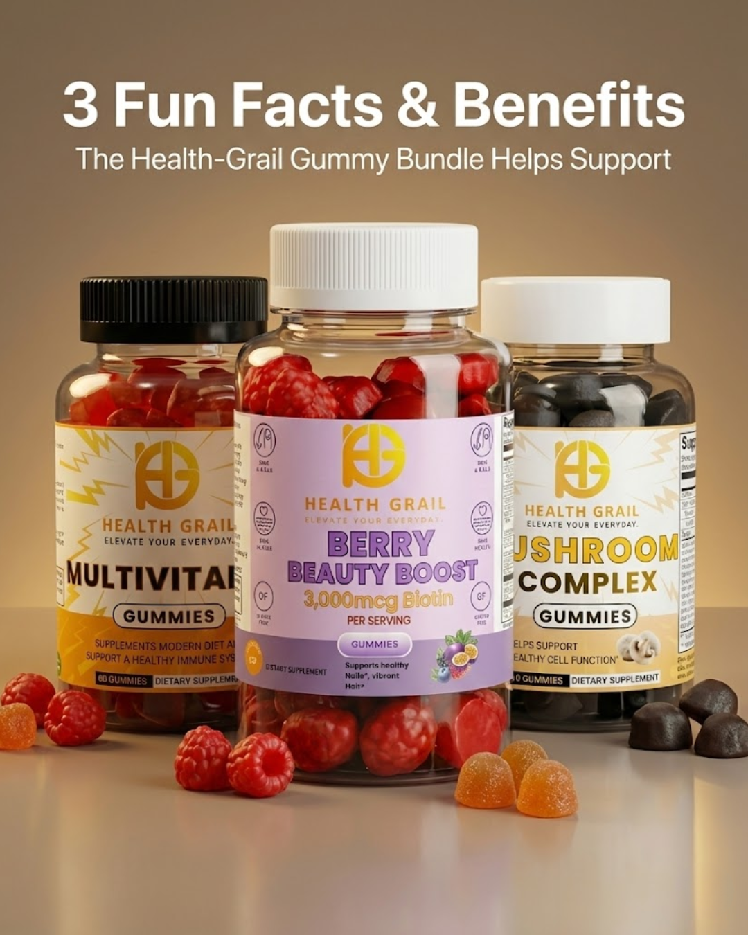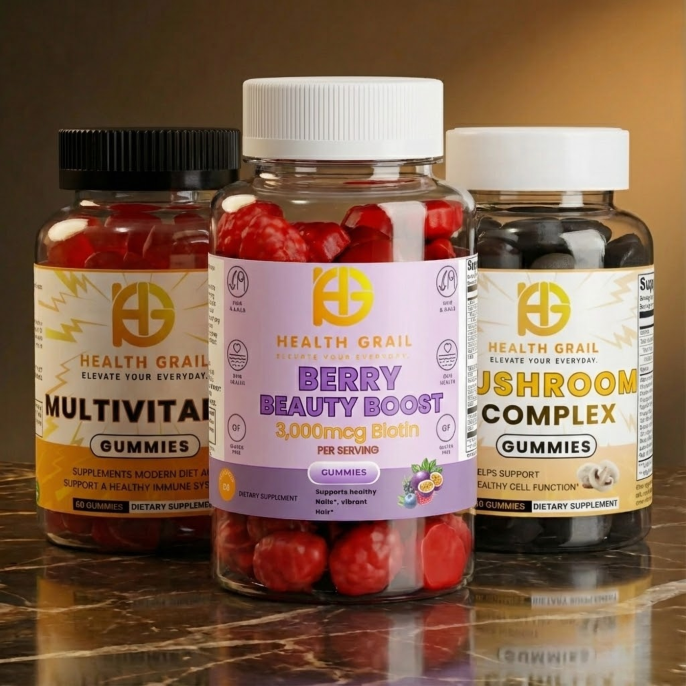 Modern routines rarely leave time for powders, multiple pills, or complicated supplement stacks. The Health-Grail Gummy Bundle simplifies everything — combining several of our top-performing gummy supplements into one convenient package. Whether you’re aiming for strength, recovery, immunity, or vital nutrition, this bundle delivers core support in a format designed for consistency: easy, portable, and enjoyable.