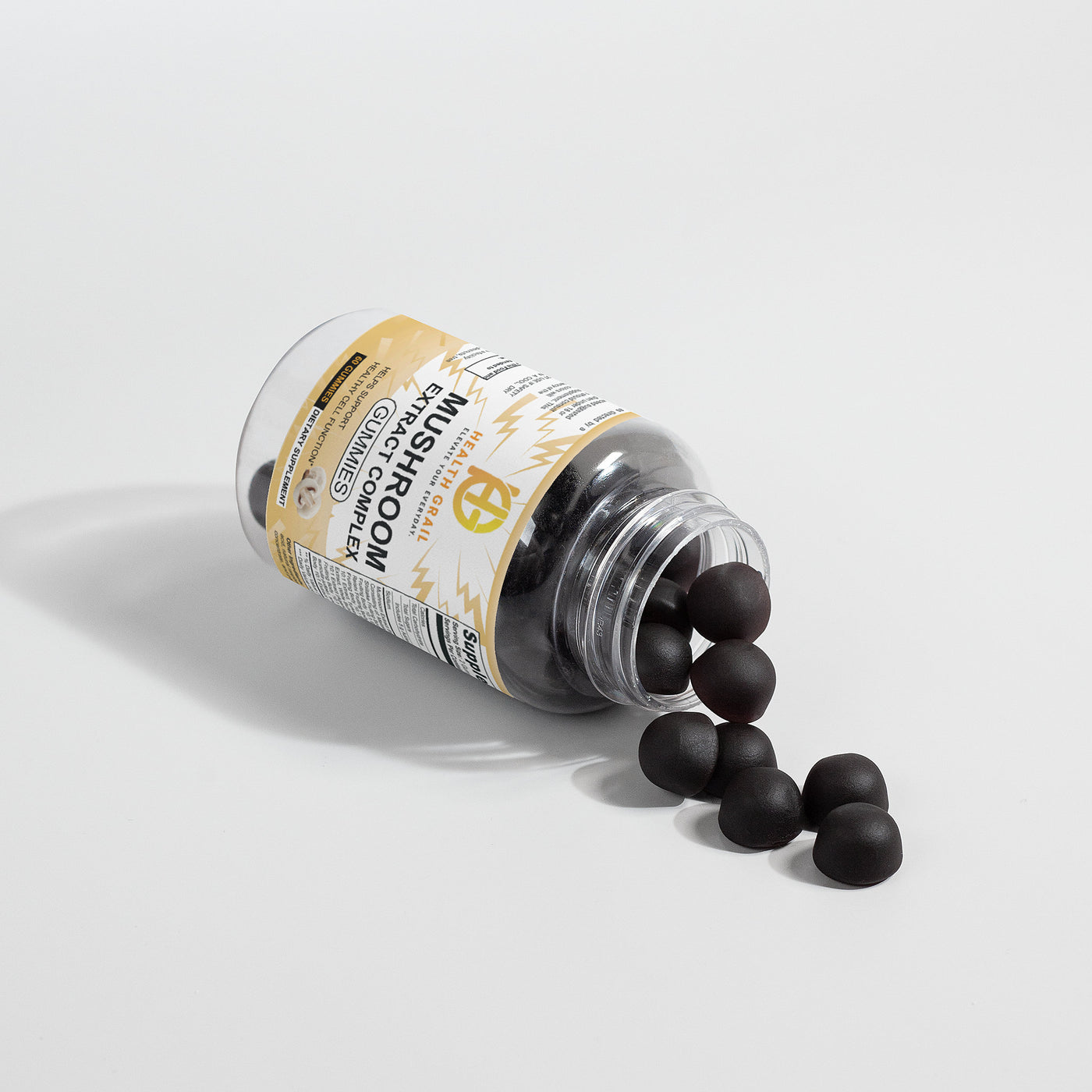 Ingredients: Mushroom extract (Maitake Fruiting Body 10:1 Extract, Shiitake Fruiting Body 10: 1 Extract, Lion’s Mane Fruiting Body 10:1 Extract, Reishi Fruiting Body 10:1 Extract, Cordyceps Fruiting Body 10:1 Extract, Chaga Fruiting Body 10:1 Extract, Turkey Tails Fruiting Body 10:1 Extract, White Button Mushroom Fruiting Body 10:1 Extract, Black Fungus Fruiting Body 10:1 Extract, Royal Sun Mushroom Fruiting Body 10:1 Extract), glucose syrup, sugar, dextrose, pectin, citric acid, natural raspberry flavor, sodium citrate, purple carrot juice concentrate, palm oil (contains carnauba wax).