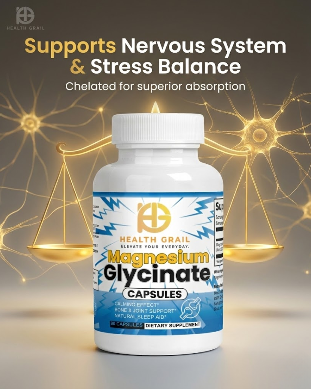 Health-Grail Magnesium Glycinate delivers highly bioavailable, gentle, and effective magnesium support using the chelated glycinate form — known for superior absorption and exceptional digestive tolerance.