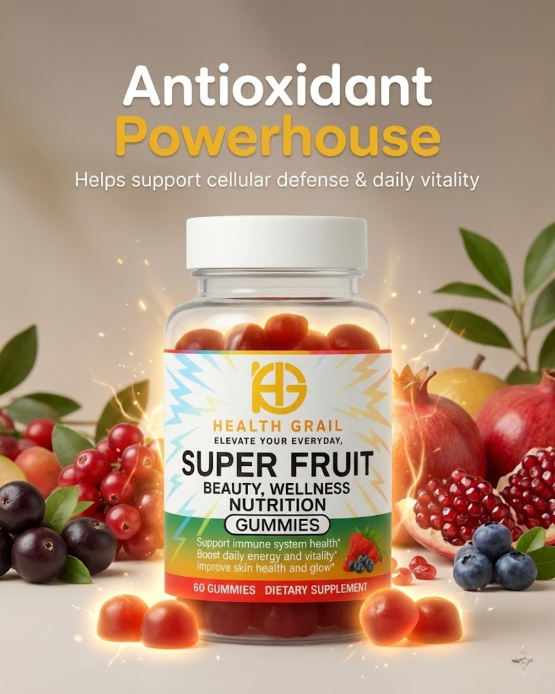 Modern life often lacks the nutrient density our bodies crave. Health-Grail Super Fruit Gummies deliver a powerful blend of fruit-derived vitamins, antioxidants, and phytonutrients in an enjoyable, easy-to-take gummy format — so you can support immunity, skin, vitality, and daily resilience without compromising convenience or quality.
