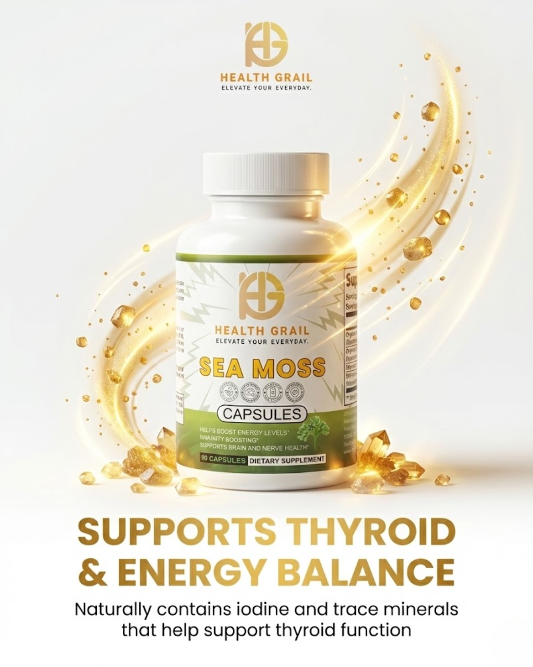 Sea Moss delivers the mineral-rich power of ocean-grown nutrition in its cleanest form: pure, premium sea moss in vegan capsules, formulated for everyday vitality, immune resilience, thyroid health, and beauty-from-within support.